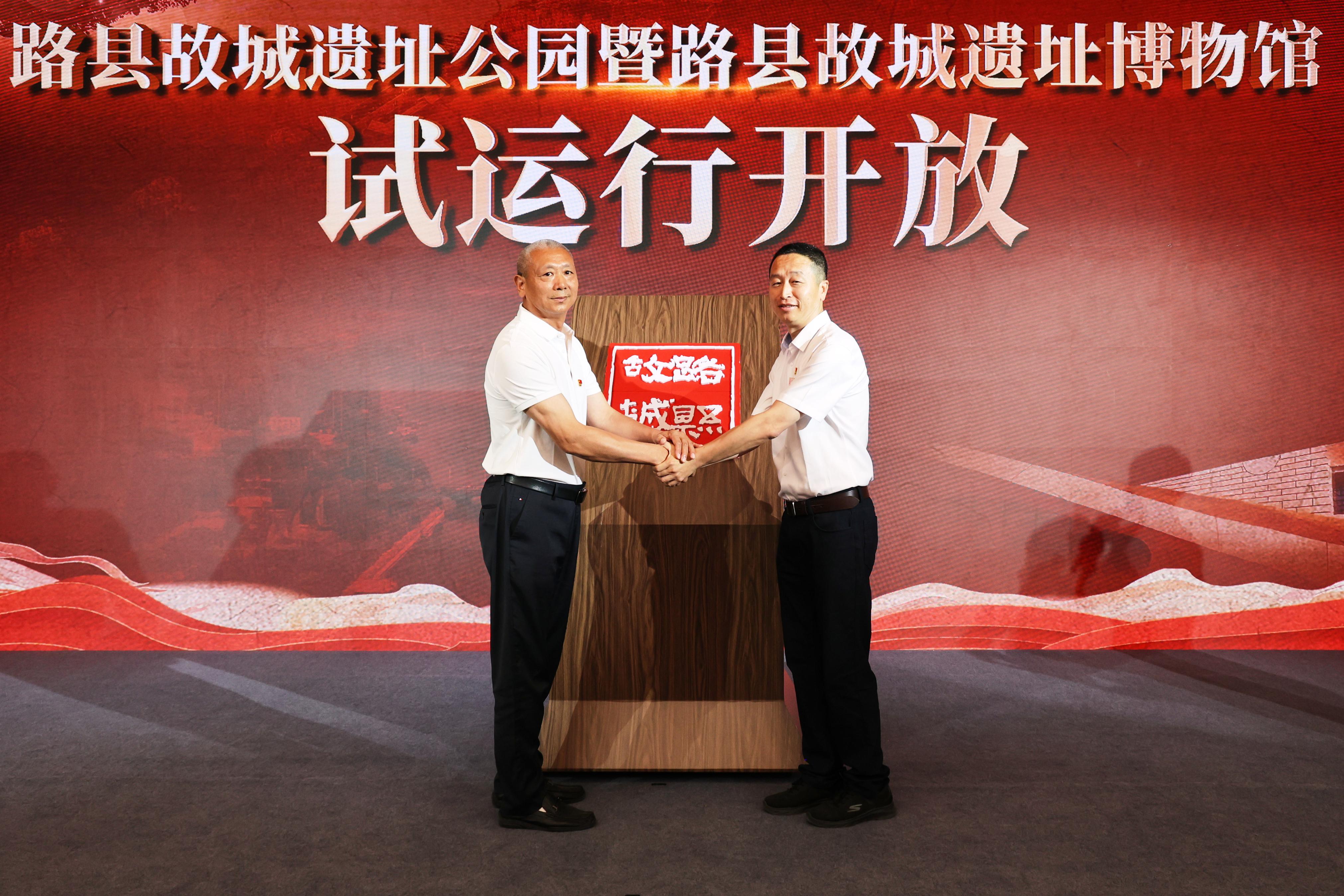 市园林绿化局、市文物局、副中心管委会、通州区政府四方代表手持“路”“县”“故”“城”完成“路县故城”Logo拼图,标志着遗址公园、博物馆正式进入试运营阶段。