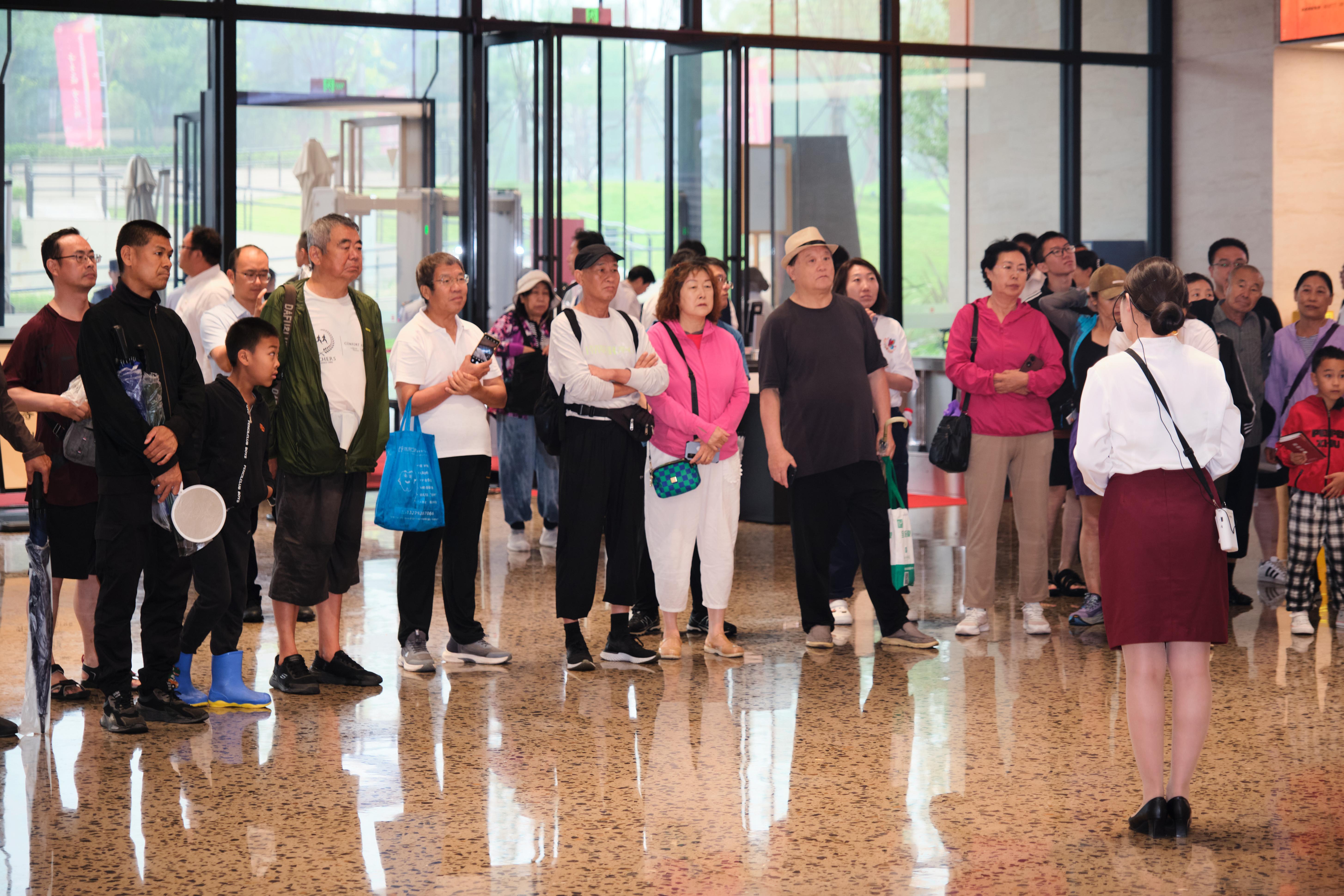 讲解台前举着手机录像的游客、与馆内设备互动的青少年…… 雨滴敲不散参观热情,反而让这场文化邂逅在湿润的空气里更显暖意。